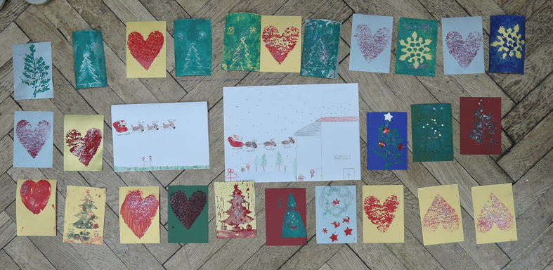 Ebenso bestand die Möglichkeit, Schneeflocken oder ein Herz für das Fest der Liebe ❤️ vorzubereiten. Rollen, Pinseln, Drucken, Trocknen. Jeder bekam dazu weihnachtlich anmutendes Papier und konnte seiner Phantasie freien Lauf lassen und farbtechnisch seine Wahl treffen.
